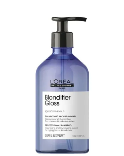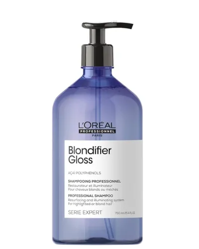 Revitaliza tu cabello rubio con el dúo de champú y mascarilla Blondifier Gloss Série Expert de L'Oréal Professionnel . Limpia, renueva y nutre el...