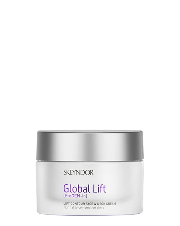 Crema redefinición rostro y cuello pieles normales a mixtas Global Lift. Crema hidratante reafirmante que redefine el volumen facial, propio de una piel joven.