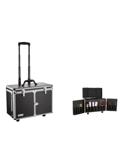 Estuches resistentes y ligeros diseñados para almacenar y transportar herramientas y productos de belleza de manera segura y organizada. Cuentan con compartimentos, bandejas desplegables y cierres de seguridad, lo que facilita el acceso rápido a tijeras, secadores, planchas y otros accesorios esenciales. Su material de aluminio ofrece durabilidad, protección contra golpes y un diseño elegante ideal para estilistas profesionales que trabajan a domicilio o en eventos.
