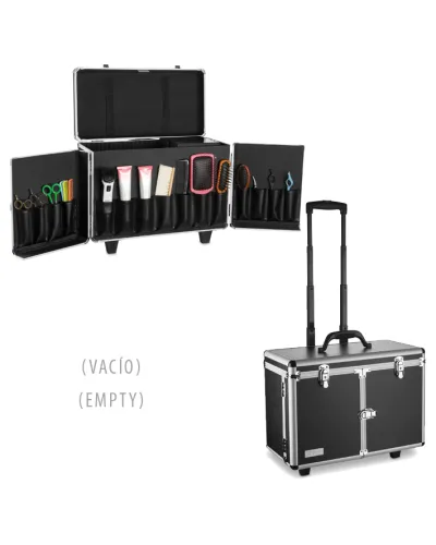 Maletín profesional de peluquería con gran capacidad para llevar todas tus herramientas: secadores y planchas de pelo, cepillos, peines, tintes..