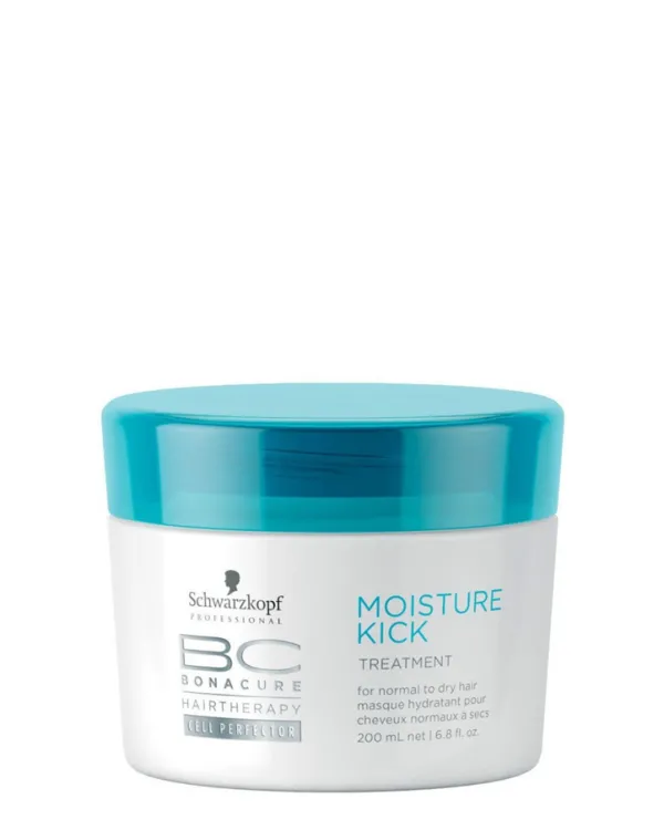 Tratamiento hidratante intensivo de Bonacure Moisture Kick, especialmente formulado para cabello de normal a seco, texturizado, rizado o quebradizo.