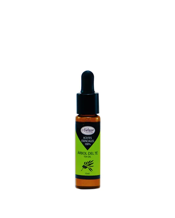 Aceite esencial 100% puro a base del árbol de té apto para su uso directo en la piel.