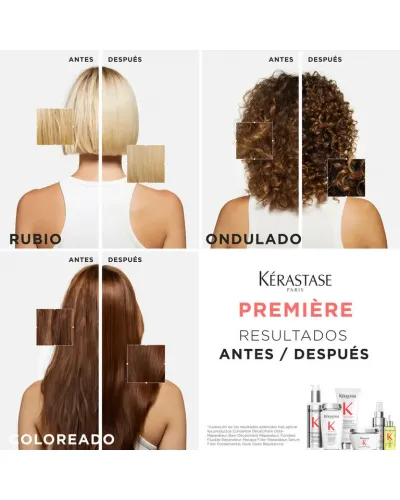 Concentré Décalcifiant Ultra-Réparateur de la gama Première repara en profundidad todo tipo de cabello dañado.