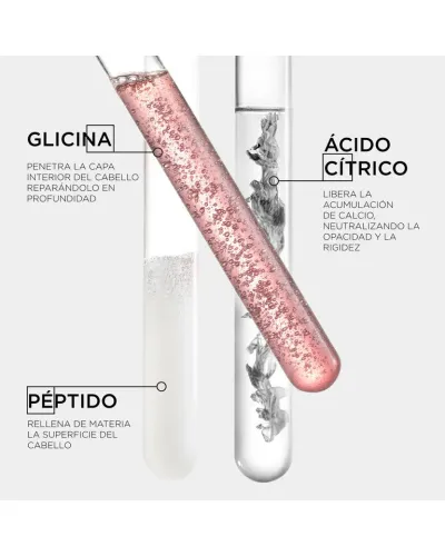 Glicina: Una vez eliminado el calcio, este aminoácido penetra en la capa interna del cabello para repararlo en profundidad