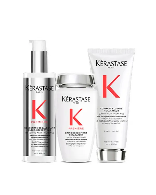 Champú Décalcifiant Réparateur 250ML: Champú reparador descalcificante para cabello dañado. Un champú rico de doble acción que actúa por dentro y por fuera para eliminar el calcio y reparar el cabello dañado. Kérastase Première Bain Décalcifiant Réparateur es un champú descalcificante y reparador para todo tipo de cabello tratado o dañado.