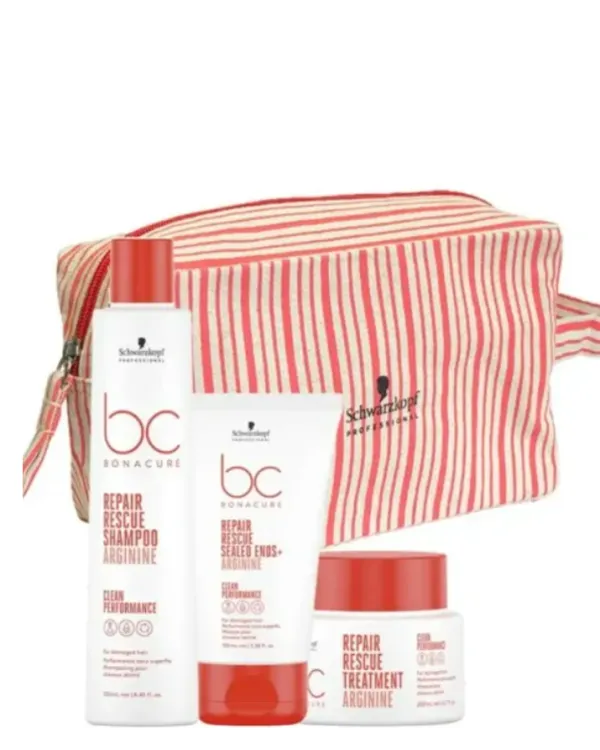Incluye; Shampoo Arginine 250ml + Treatment 200ml + Sealed Ends 100ml