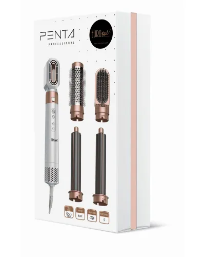 Descubre la nueva maravilla de la mano de Eurostil; Penta. Un nuevo secador que incluye 5 accesorios intercambiables diferentes para que consigas el resultado que tanto desees en cada momento. Podrás lograr diferentes acabados gracias a su boquilla, su cepillo redondo, su cepillo alisador y sus dos barriles rizadores. Desde ondas hasta un cabello liso completo. ¡Todo es posible con Penta! Posee una temperatura máxima de 90ºC y un botón de aire frío para acabar los peinados con un brillo intenso y duradero. Déjate sorprender por la facilidad y todos los resultados que puedes conseguir con Penta.