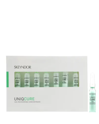 Tratamiento de aplicación 1 vez al día (durante 1, 2, o 3 semanas). Primero realiza la limpieza diaria. Después aplica el tratamiento Uniqcure de la siguiente manera: Abrir la ampolla SOS Recovering Concetrate Concentrate Skeyndor, colocar el aplicador y seguido aplicar el producto en las manos y extender en rostro, cuello y escote. Haremos un masaje energizante de efecto oxigenante a partir de percusiones, fijamos el producto con las plamas de la mano. Por último aplica la Crema de Tratamiento Skyendor habitual.