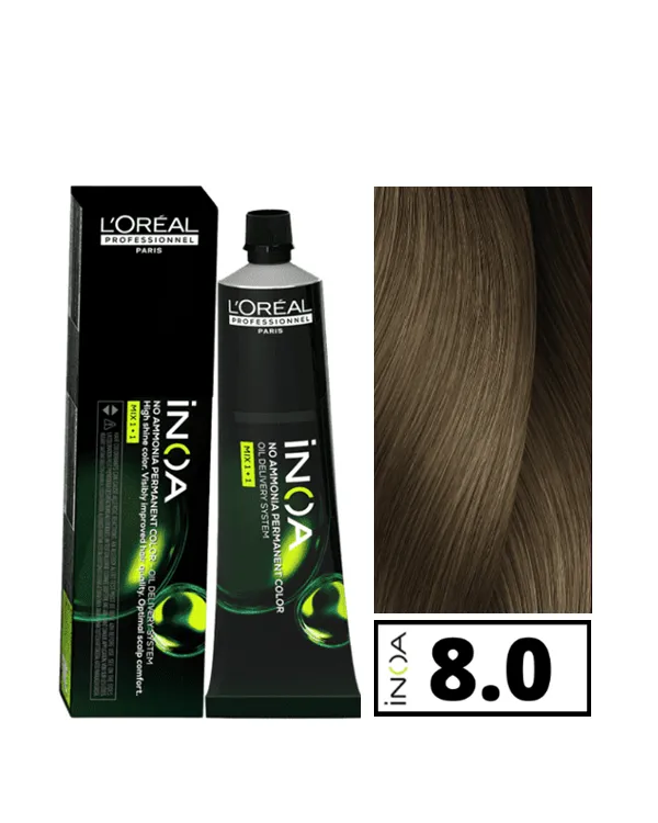 Tinte Inoa sin Amoniaco Nº8.0 Rubio Muy claro Fundamental - L´Oreal Professionel