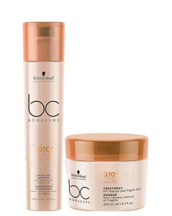 El champu restaurador Q10 limpia el cabello maduro y frágil y proporcionandole fuerza para combatir los signos de la edad. BC Time Restore Q10 Plus ahora con una mayor concentración de coencima Q10, estimula las raices del cabello maduro para activar la producción de los dos tipos de queratinas que disminuyen con el tiempo. La tecnologia Amino Cell Rebuild recupera la elasticidad natural del cabello, fortaleciendo la estructura de las celulas capilares. Para cabellos resistentes y brillantes consiguiendo una belleza atemporal.