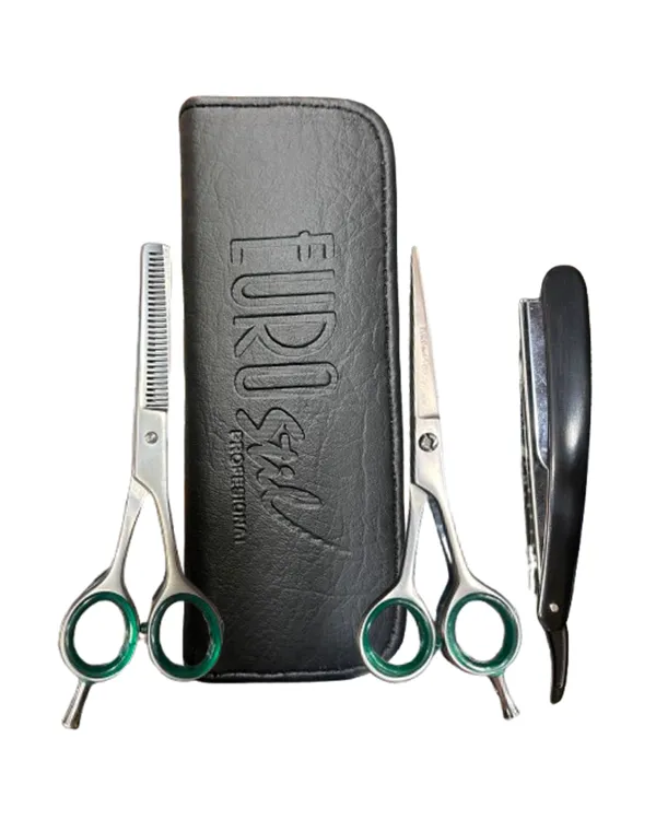 Estuche Completo Peluquero Incluye: 1 Tijera + Tijera Esculpir + Navaja + Peine
